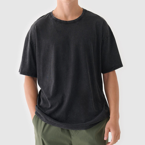 Axit rửa Jersey T-Shirt O-cổ thường xuyên phù hợp với thiết kế thoáng khí tùy chỉnh in logo rửa màu sắc khác nhau trống thiết kế